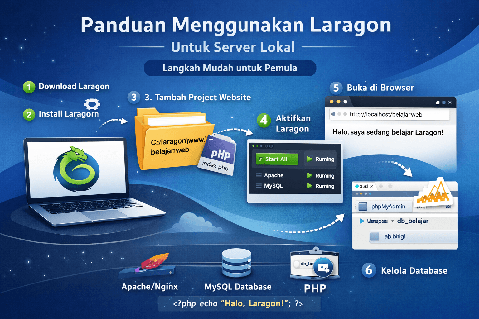 1. Pengertian Server Lokal Server lokal adalah server yang berjalan di komputer kita sendiri. Dengan server lokal, kita bisa menjalankan website ta...