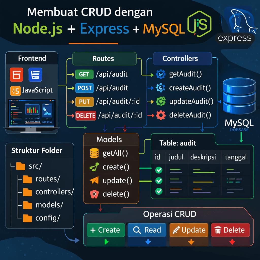 Dengan menggunakan Node.js, Express, dan MySQL, kita dapat membangun backend aplikasi web yang terstruktur dan mudah dikembangkan.